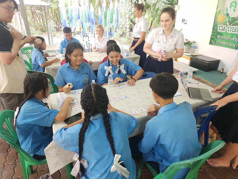 Twenty-five BBA students visited Wat Bang Nam Phueng Nai School in Khung Bang Kachao to share their knowledge with 50 secondary school students through five learning stations: